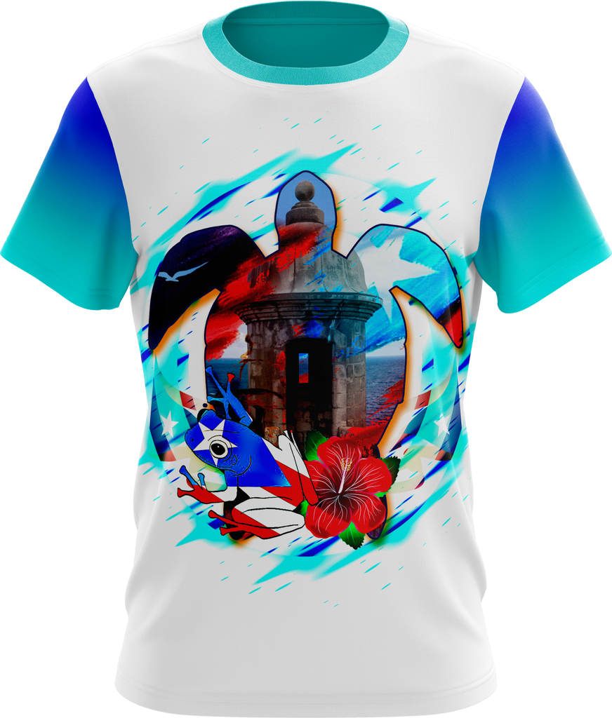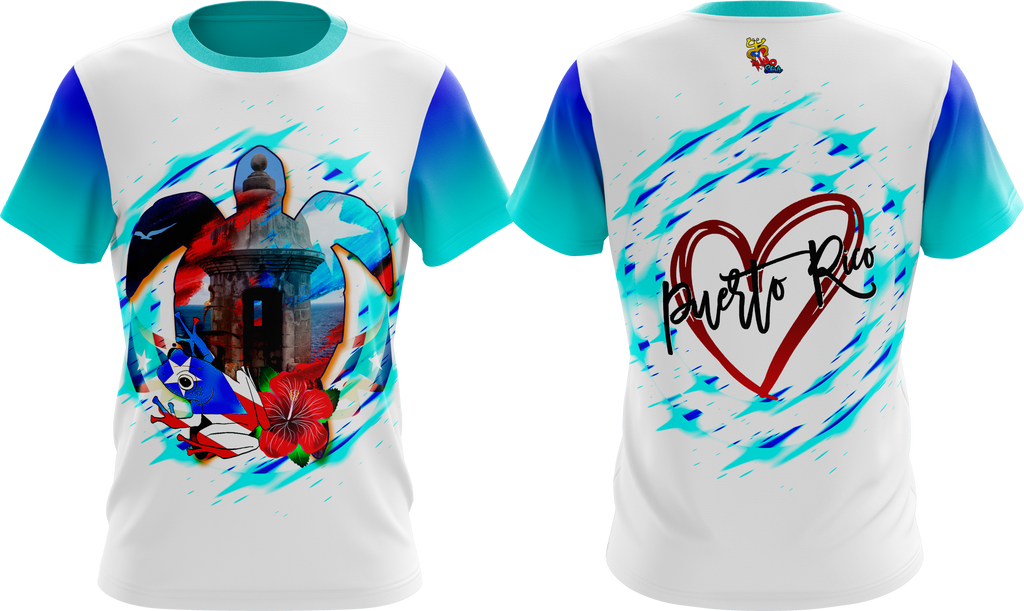 El Morro es uno de los diseños más populares ya que nos regresa a ese lugar que nunca nos cansamos de visitar. Asi como el tinglar boricua. Lindos detalles hacen de este estilo uno que no podemos dejar de tener. La camiseta es 100% polyester microfiber (Dry Fit) para mantenerte fresco en cualquier temperatura.
