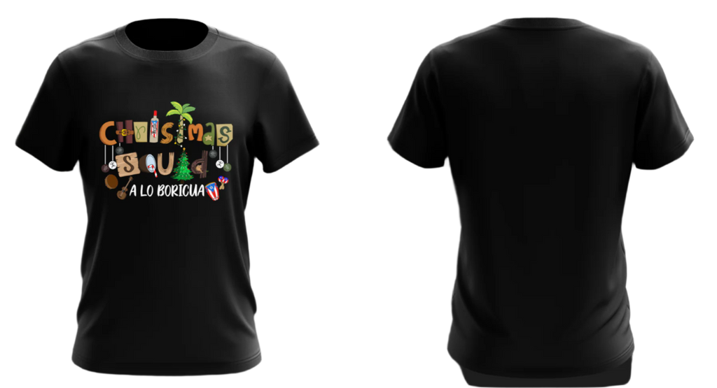 🎄 "Christmas Squad A Lo Boricua": ¡La camiseta ideal para compartir con tu combo navideño y celebrar al estilo boricua! 🍹🎶
