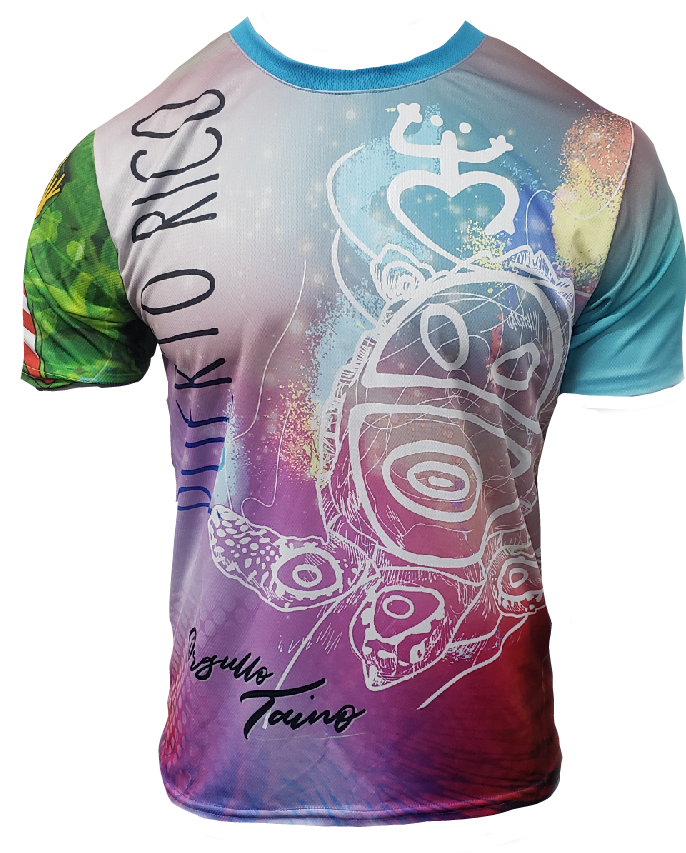 El diseno de "Orgullo Taino" es uno único y nos lleva a nuestros principios con un diseno muy único que muestra nuestra herencia taina. La camiseta es 100% polyester microfiber (Dry Fit) para mantenerte fresco en cualquier temperatura.