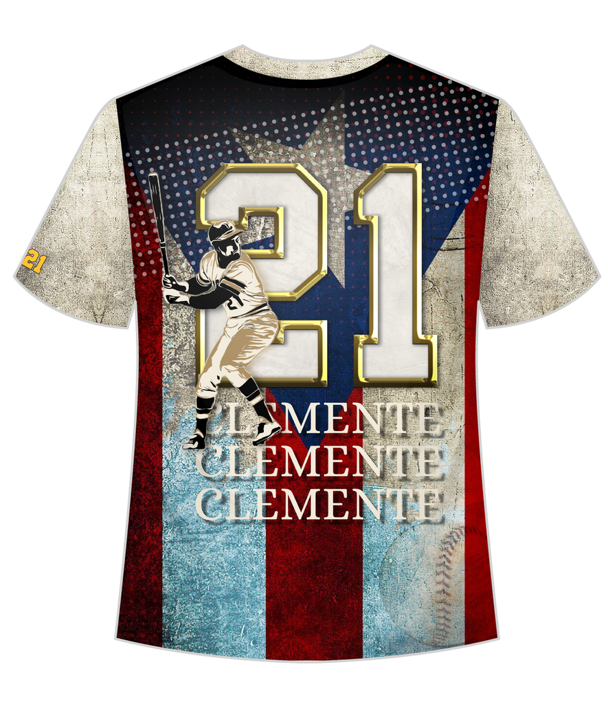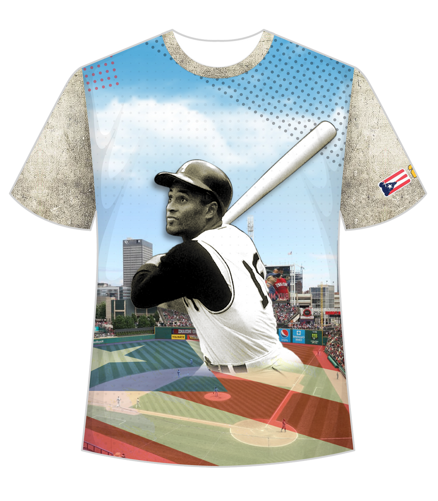 La segunda camiseta de la colección de Roberto Clemente llego a Taino Shirts. Nuestra colección de diseños exclusivos honrando a nuestra estrella boricua es para todos.