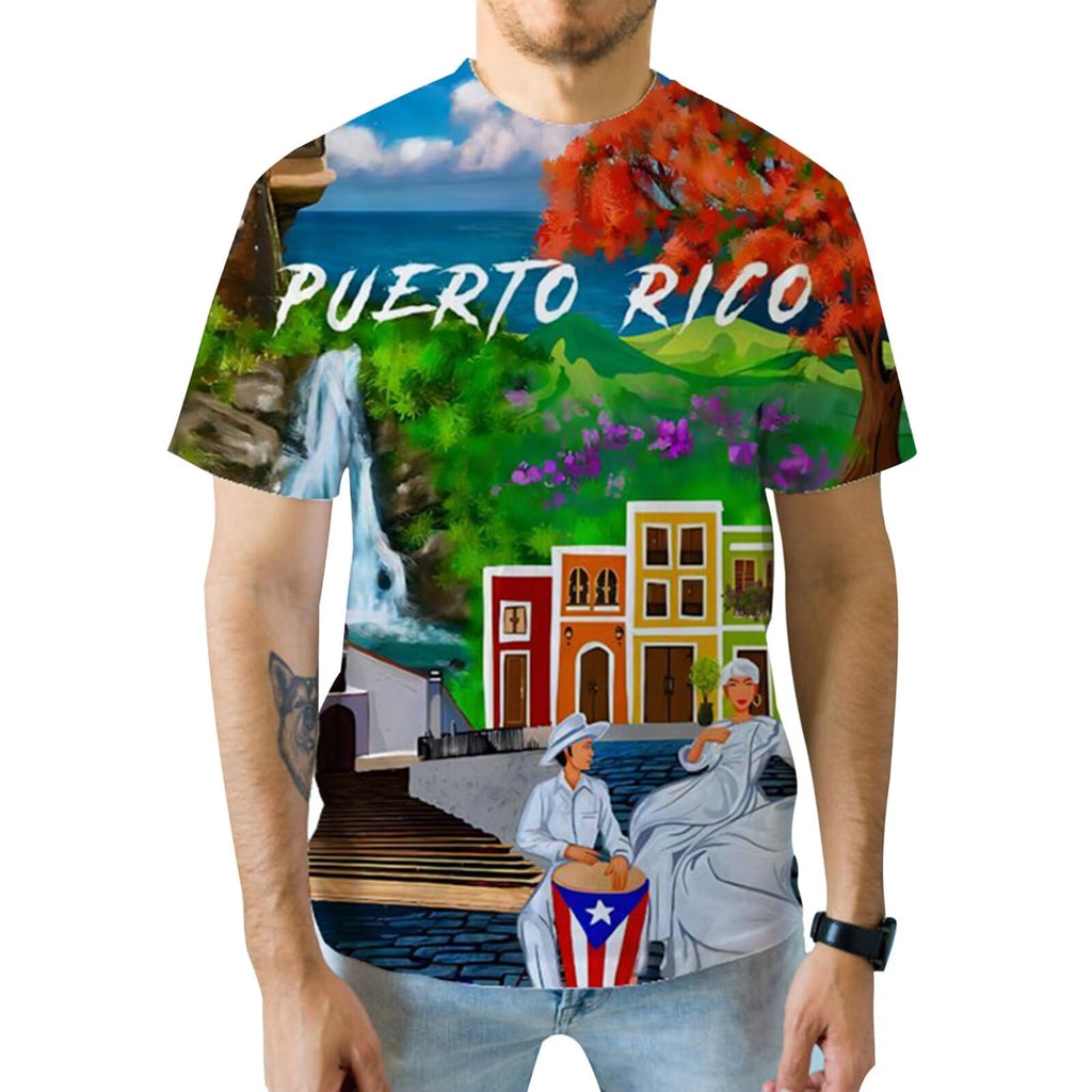 Muestra tu orgullo con nuestra Camisa de Puerto Rico para hombres, que presenta un vibrante estampado temático que rinde homenaje a la rica historia de Puerto Rico.